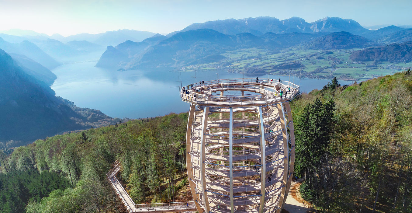 Kaum in der Luft, eröffnet sich dir eine spektakuläre Sicht auf den imposanten Traunstein (1.691 m). Dieser Berg, oft als „Wächter des Salzkammerguts“ bezeichnet, erhebt sich steil aus dem Traunsee und bietet eine eindrucksvolle Kulisse. Von oben erkennst du die beliebten Wanderwege und Hütten, während du das Gefühl der grenzenlosen Freiheit genießt.